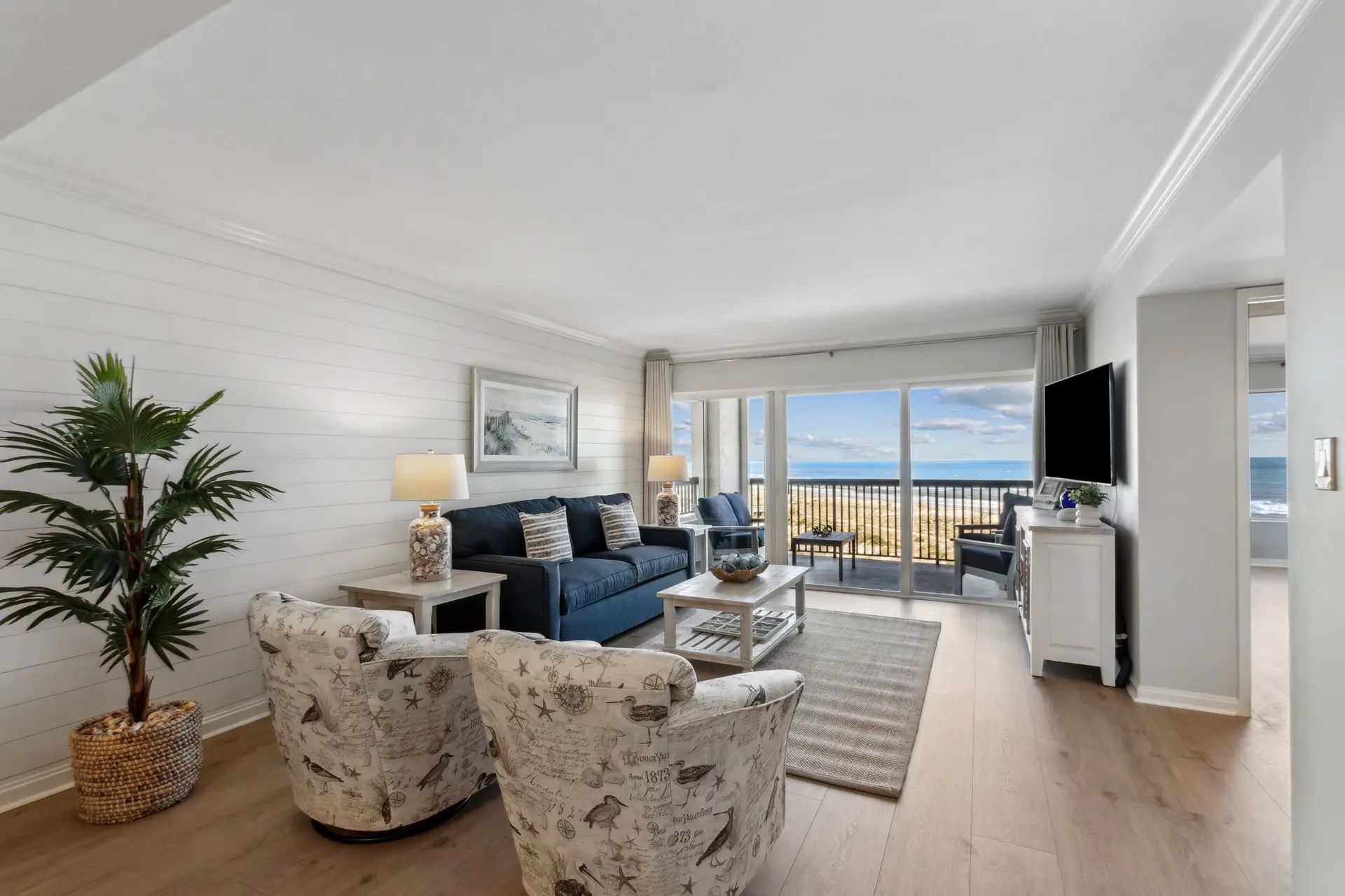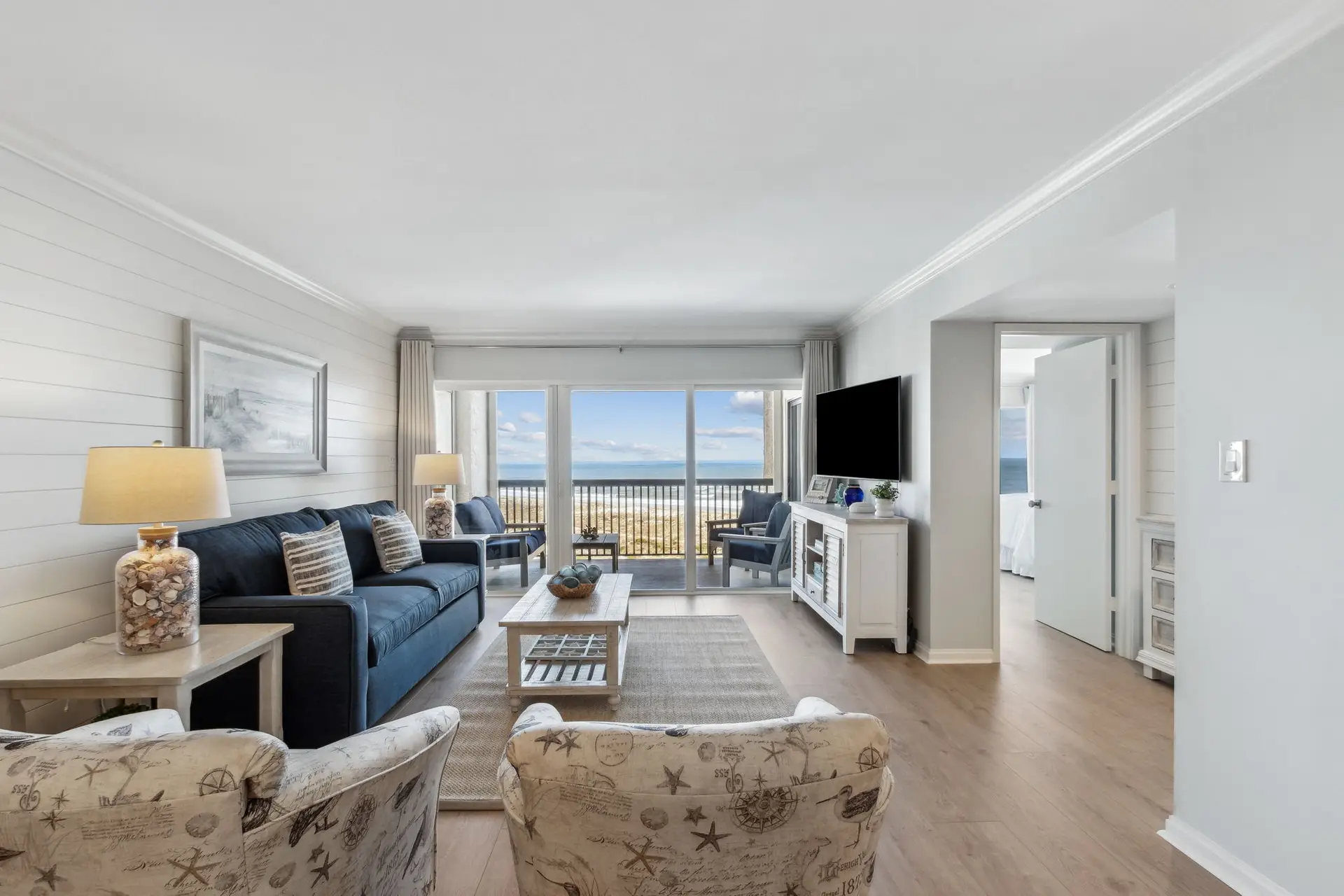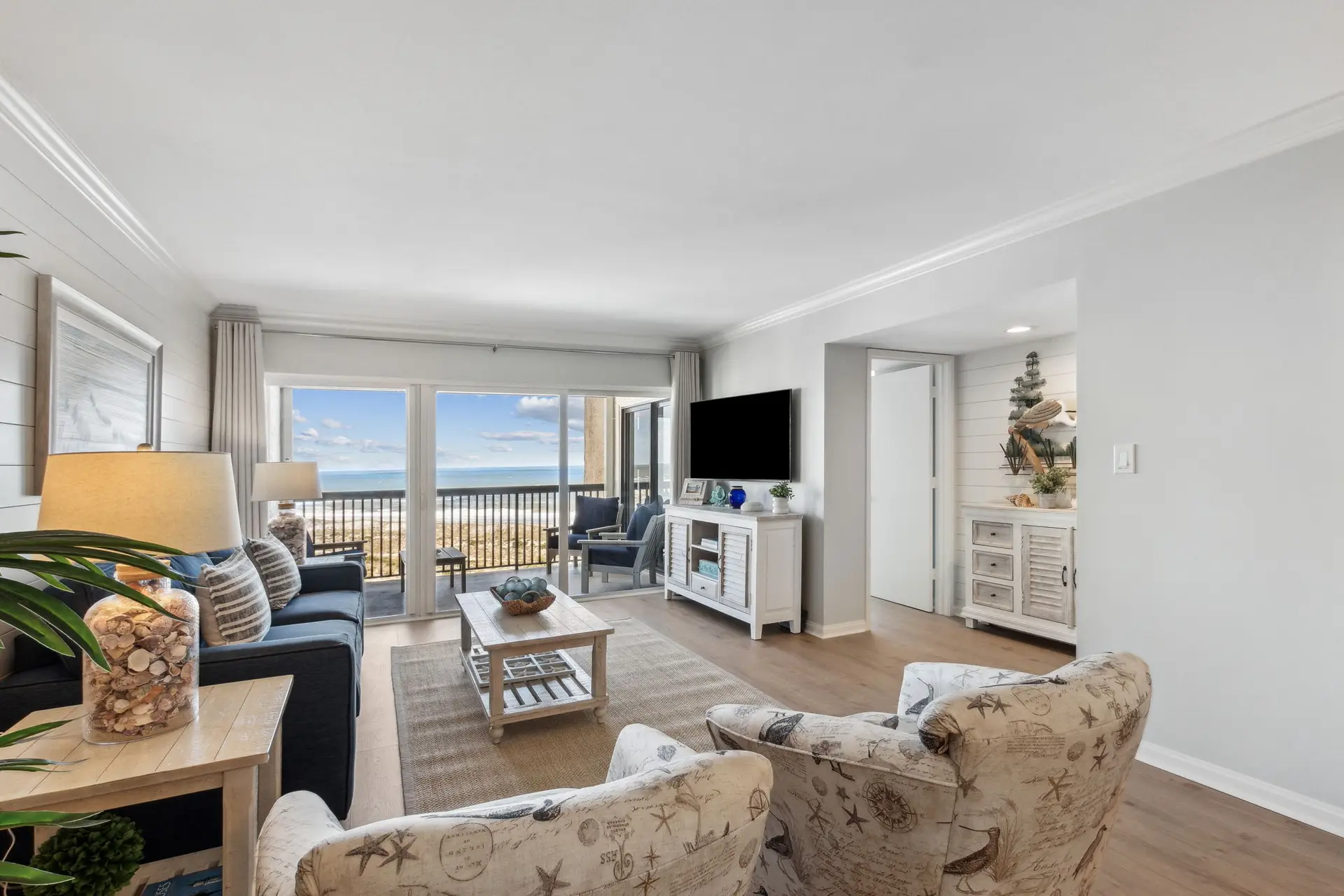 Welcome to Coastal Luxe Retreat, a stunning 6th-floor oceanfront condo where coastal elegance meets sweeping sky-to-sea views. The moment you step inside, floor-to-ceiling windows frame the Atlantic horizon, filling the space with natural light and an immediate sense of calm. Thoughtfully curated décor, a soothing color palette, and high-end finishes create a refined yet welcoming atmosphere designed for relaxation, connection, and true coastal comfort. Whether you’re unwinding after a day in the sun, enjoying an evening drink, or simply appreciating the peaceful expanse of the ocean, every moment here feels elevated and serene.