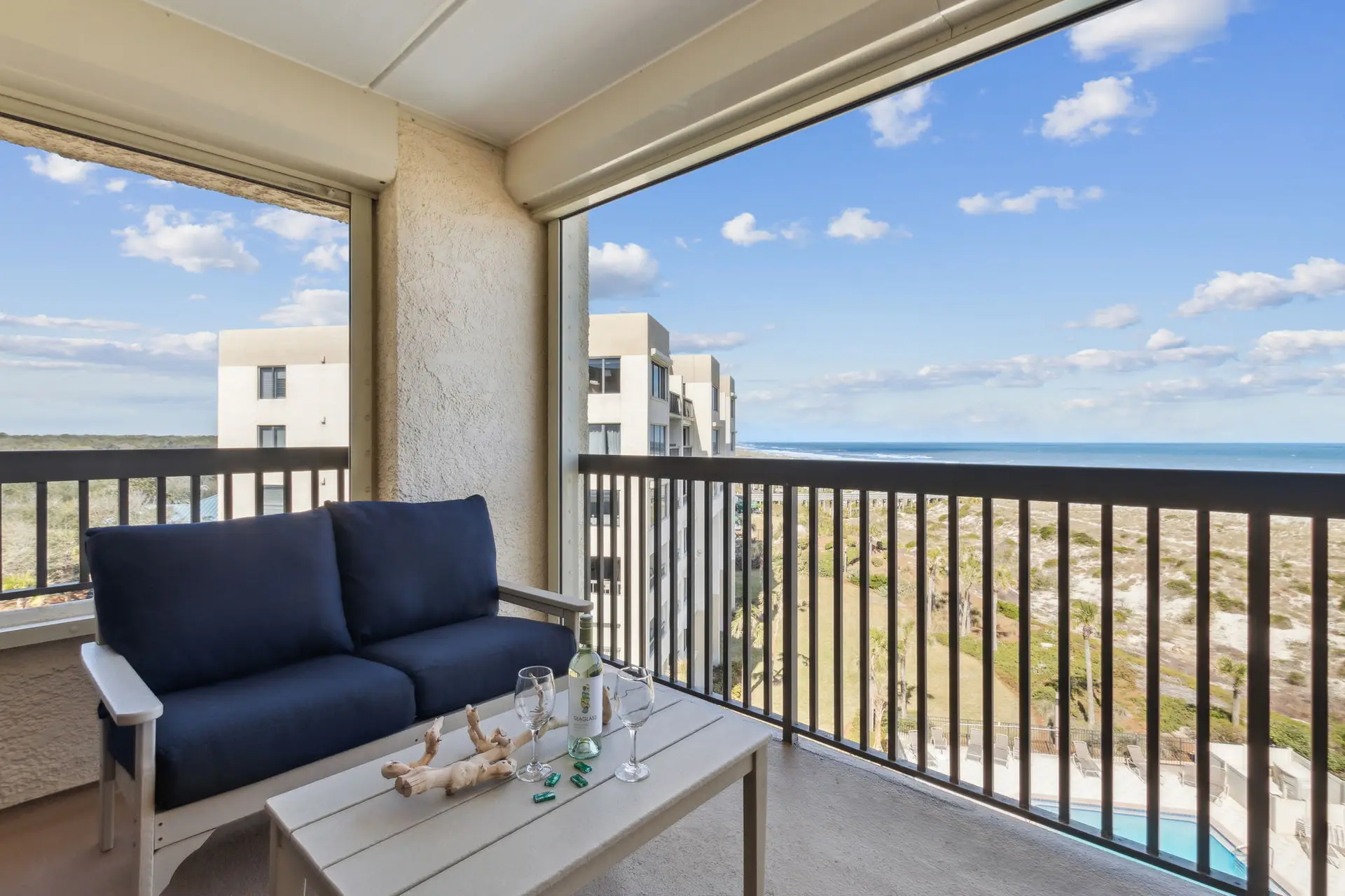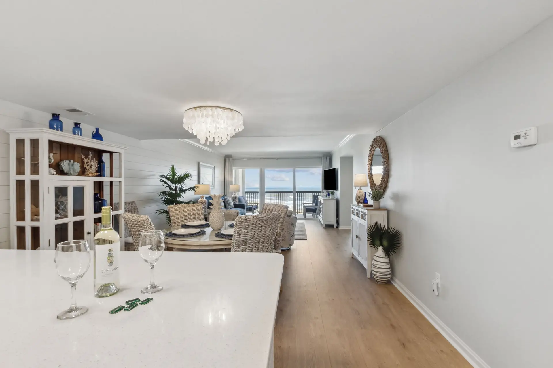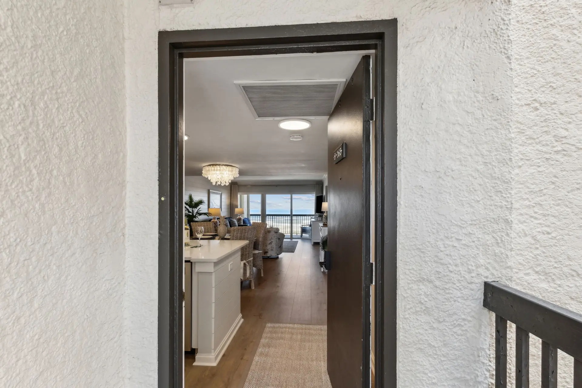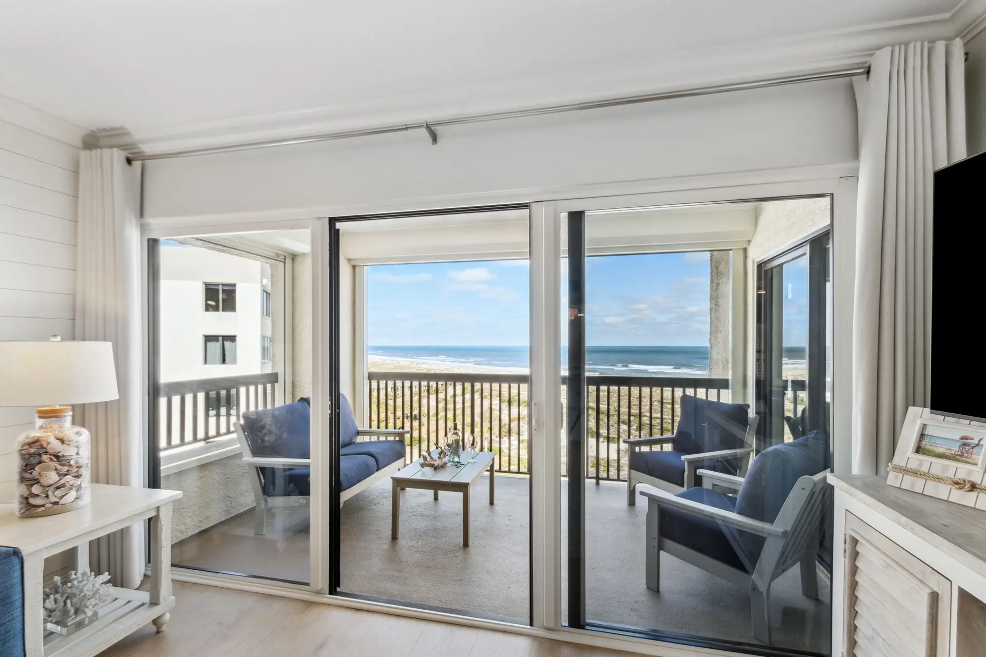 Welcome to Coastal Luxe Retreat, a stunning 6th-floor oceanfront condo where coastal elegance meets sweeping sky-to-sea views. The moment you step inside, floor-to-ceiling windows frame the Atlantic horizon, filling the space with natural light and an immediate sense of calm. Thoughtfully curated décor, a soothing color palette, and high-end finishes create a refined yet welcoming atmosphere designed for relaxation, connection, and true coastal comfort. Whether you’re unwinding after a day in the sun, enjoying an evening drink, or simply appreciating the peaceful expanse of the ocean, every moment here feels elevated and serene.