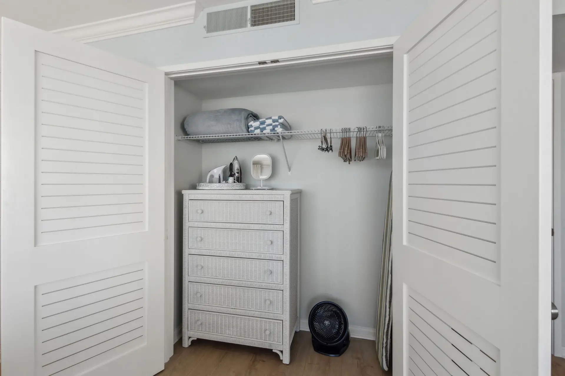 - For your convenience, the unit is stocked with an iron/ironing board, washer/dryer, broom/dustpan, shampoo, conditioner, body wash, hair dryer, and beach towels.