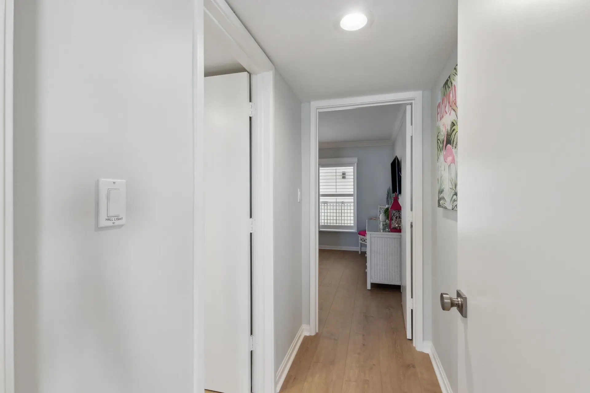 - Bedroom 2: King bed, TV, attached bathroom (also opens to hall) with tub/shower combo